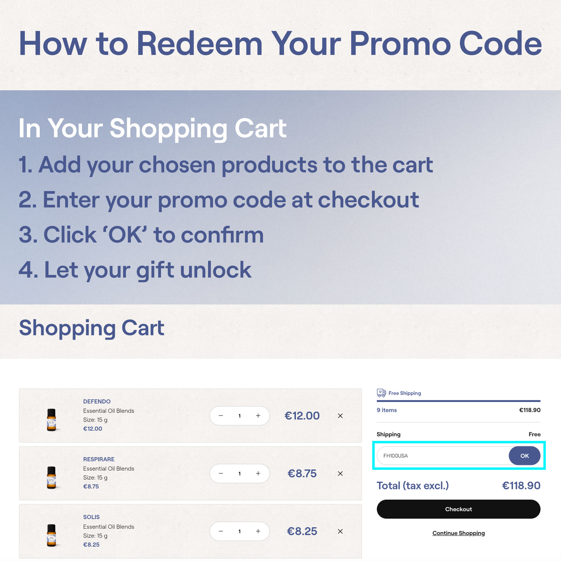 Add your favourite products, apply your promo code at checkout, and let the gift come to you.